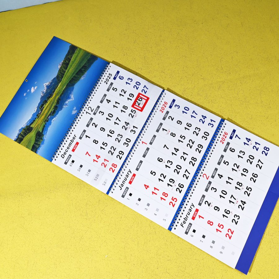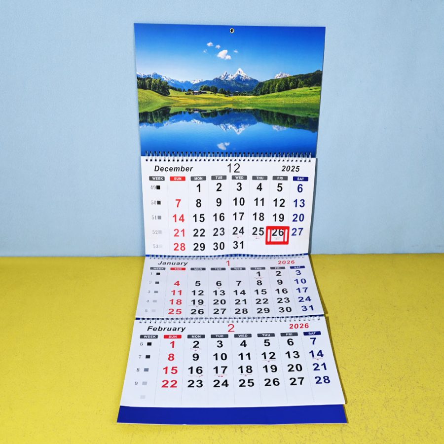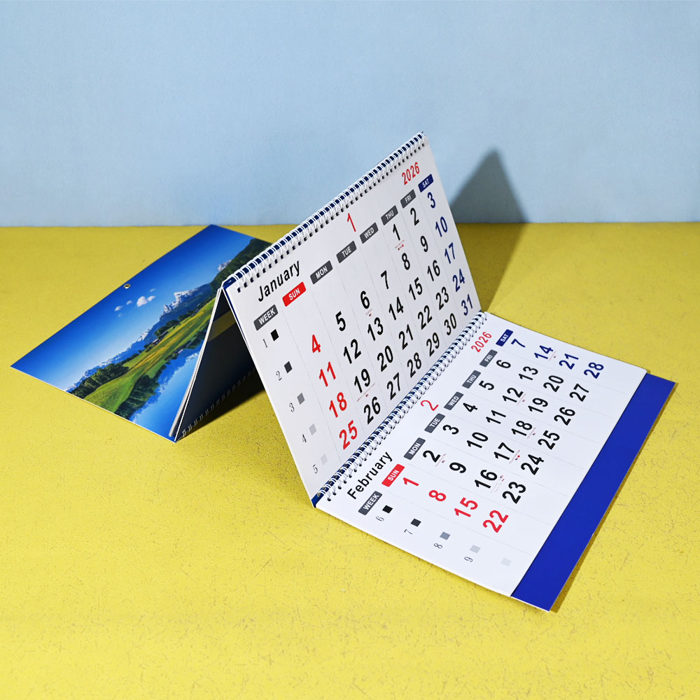 Box Printing Custom FSC Coated Paper Paperboard Tri-folder Three-Folding Wall Spiral Advertising Business 3 Years Calendar