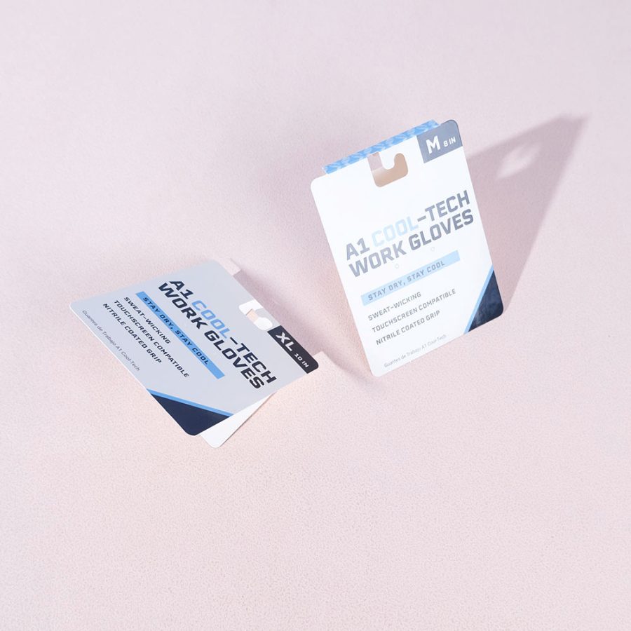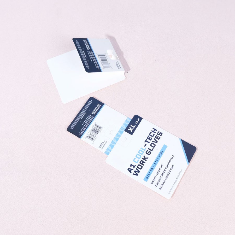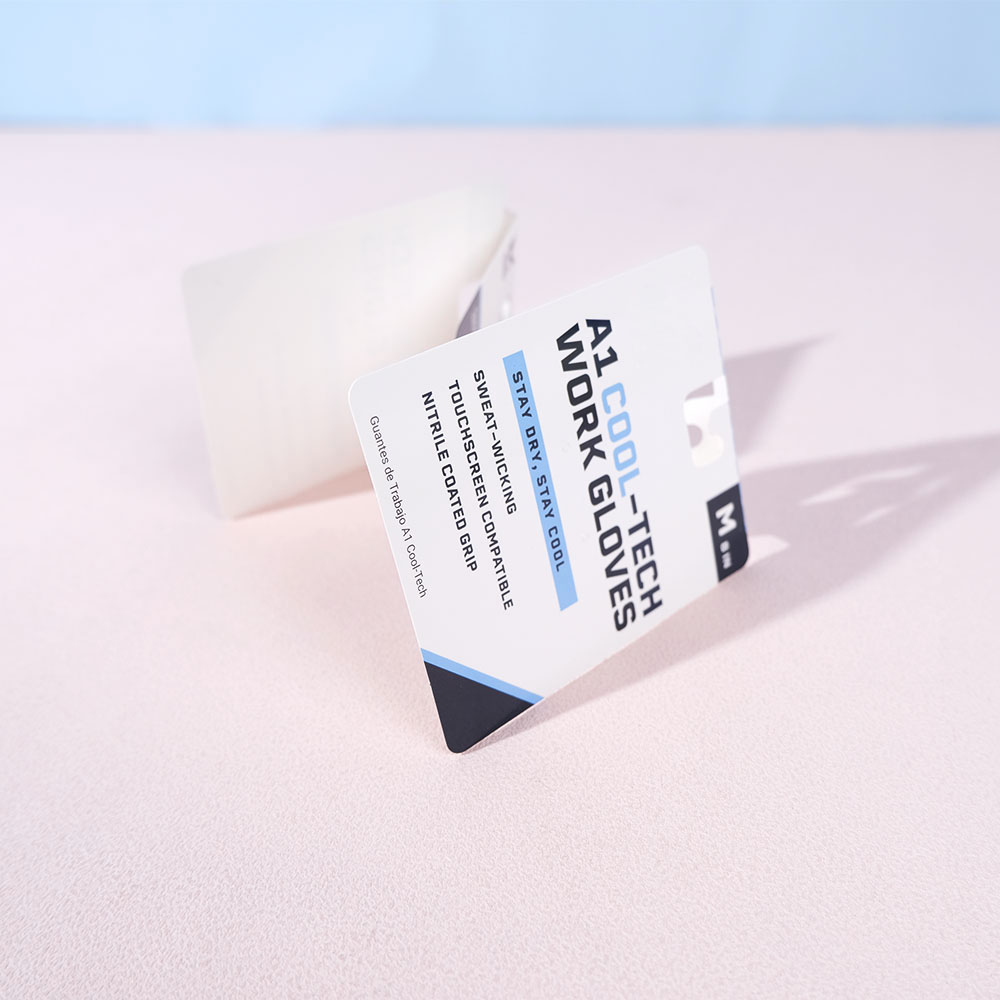 Box Printing Custom Eco CMYK Logo Printed Folded White Cardboard Paper Label Socks Hanging Tag with Hook