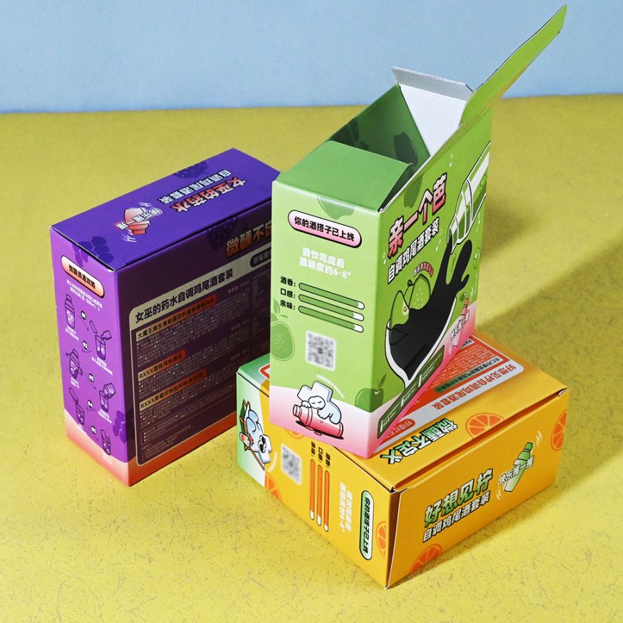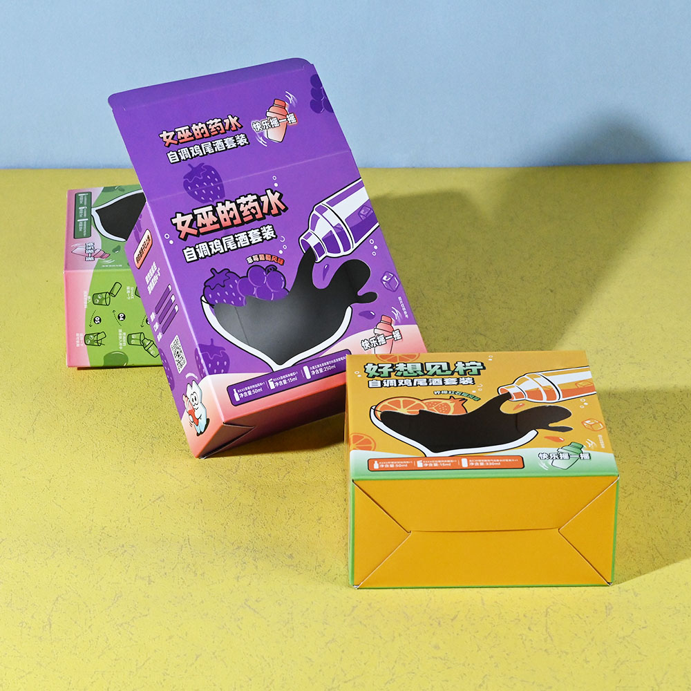 Box Printing Custom Corrugated Cardboard FSC ISO22000 Paper Cocktail Bottle Mixed Drink Beverage Packaging Boxes with Window