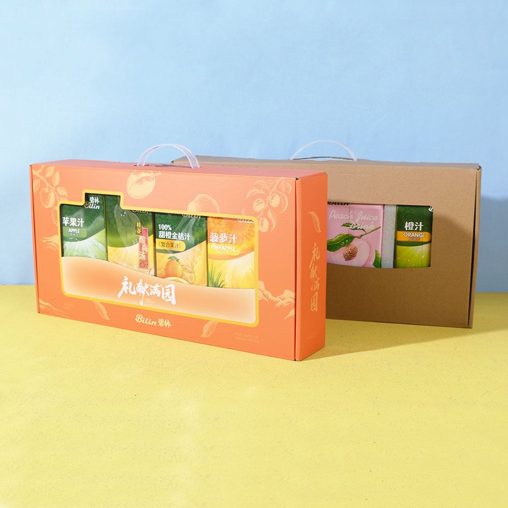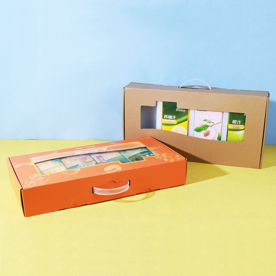 Box Printing Custom Drink Beverage Package Gift Packaging Foam Inseart Corrugated Paper Boxes with Plastic Handle and Window