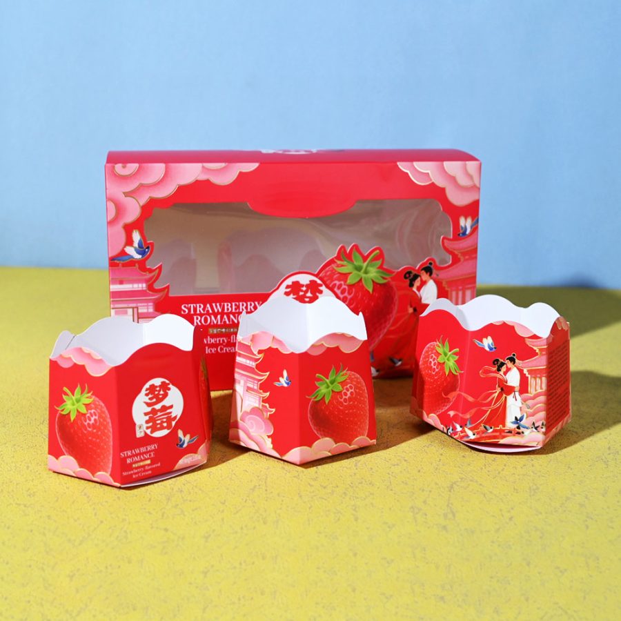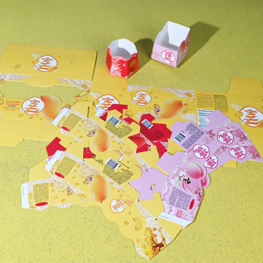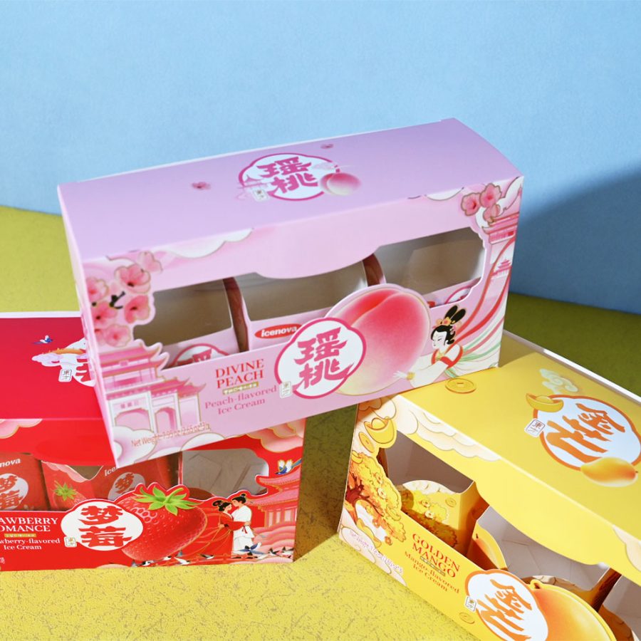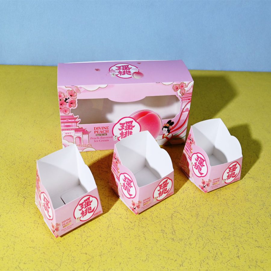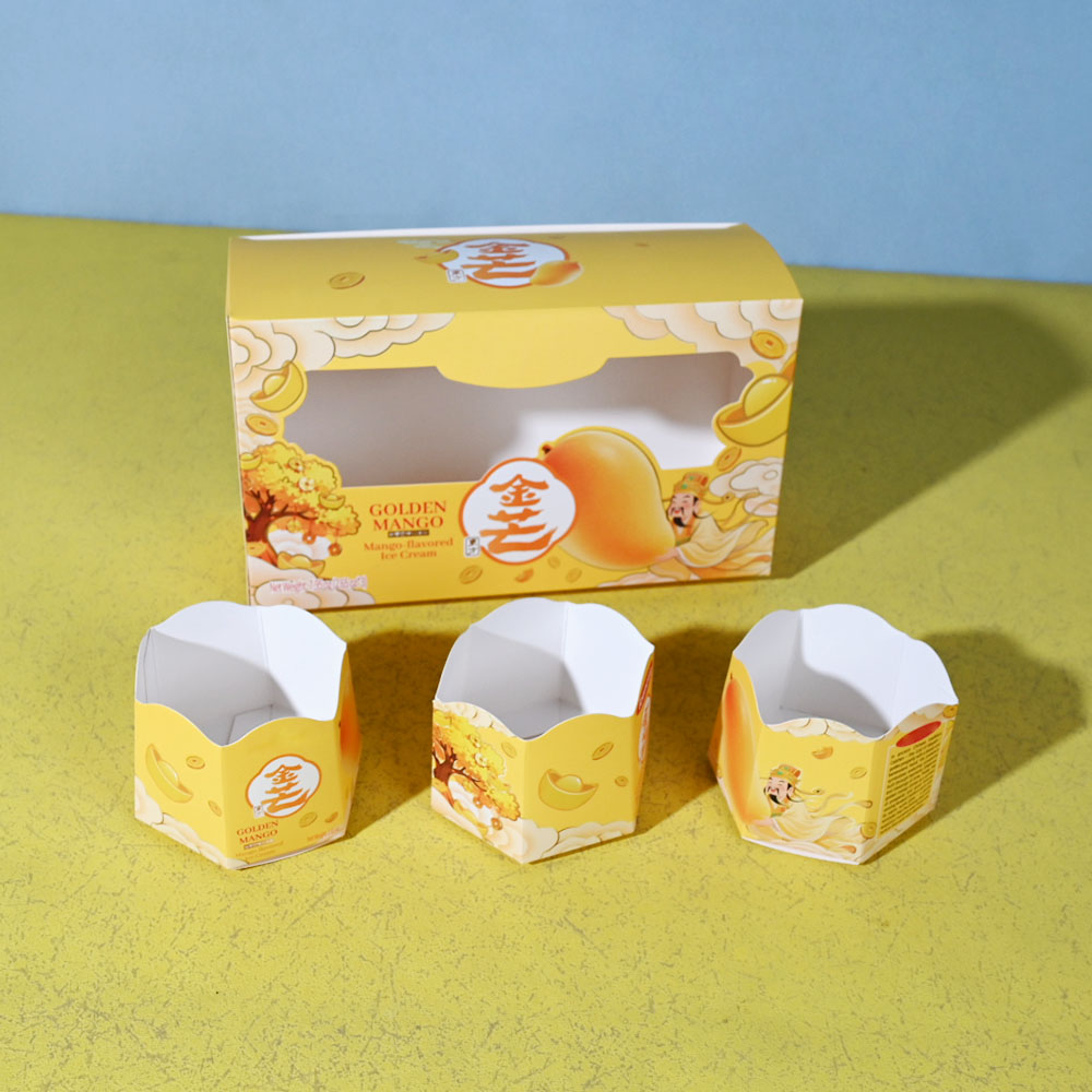 Box Printing Custom ISO22000 FSC CMYK Biodegradable Food 3Pcs Ice Cream Foldable White Cardboard Paper Box Packaging with Window