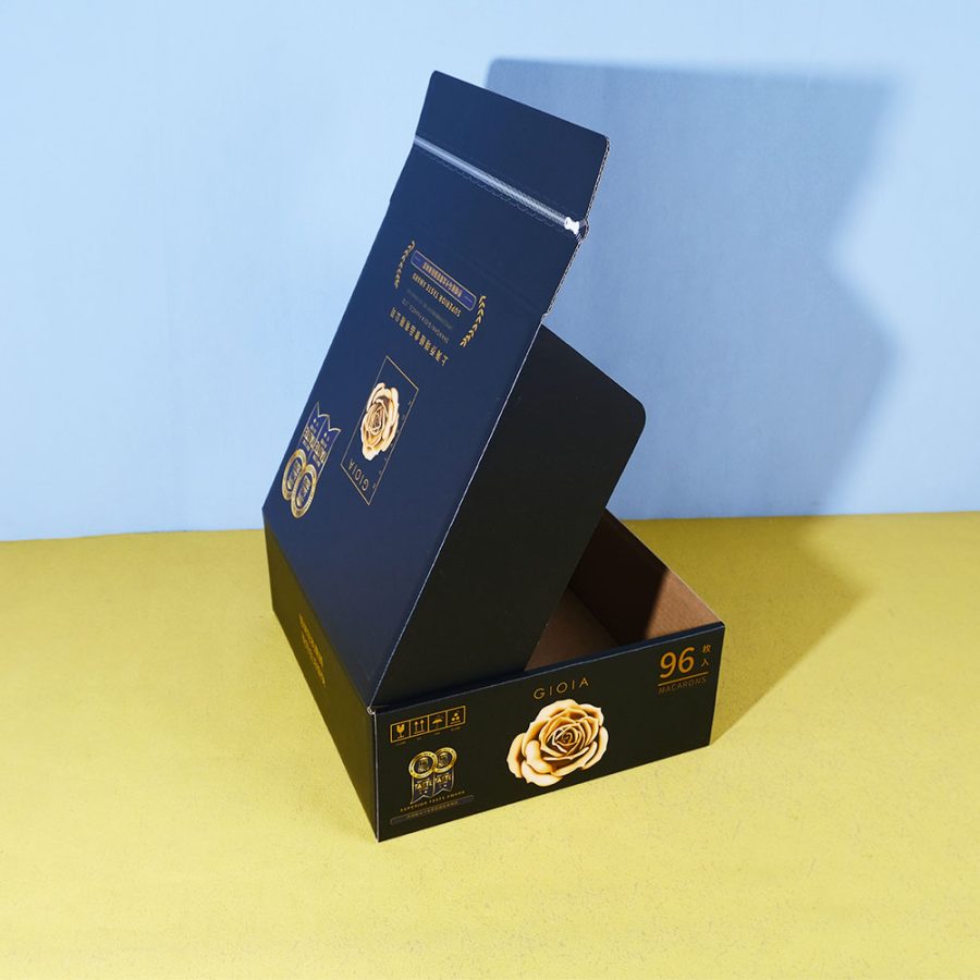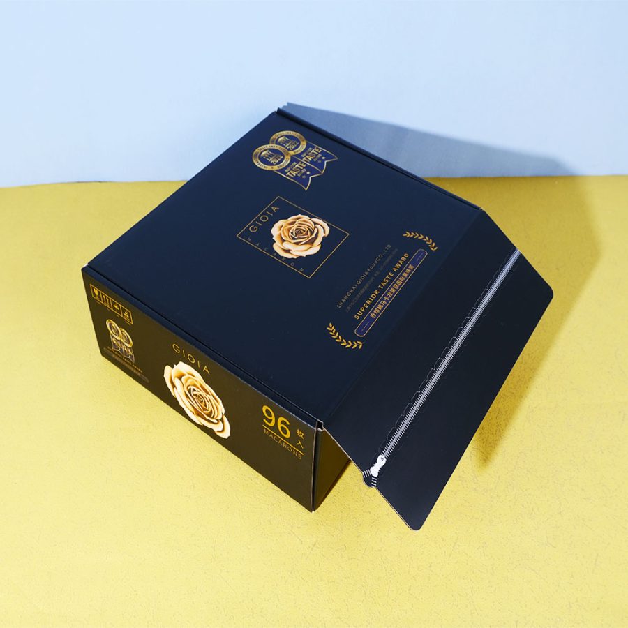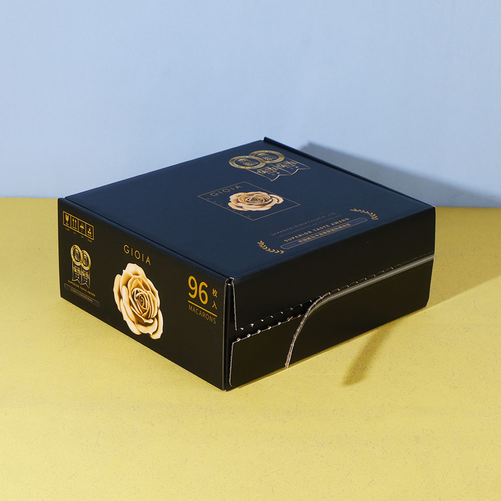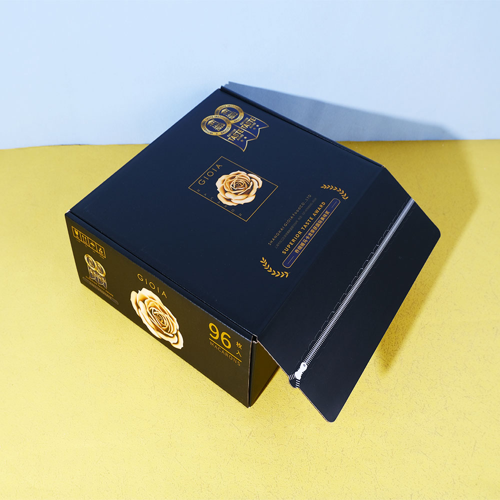 Box Printing Custom FSC ISO22000 96PCS Macarons Chocolate Recycled Cardboard Tear Strip Black Mailer Shipping Boxes Packaging