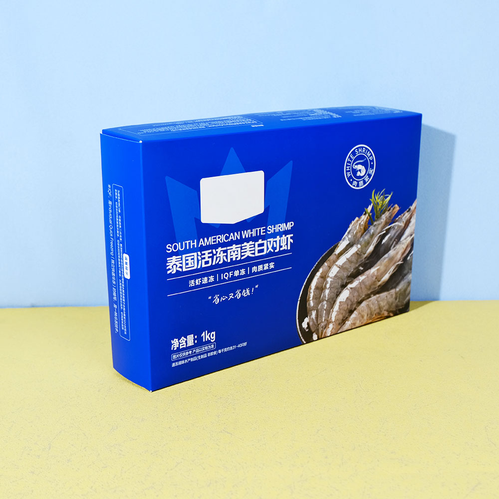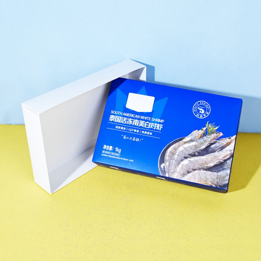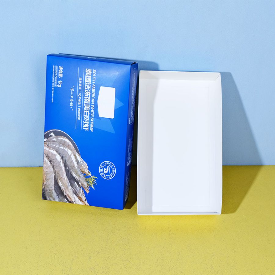 Box Printing Custom Empty Cardboard Foldable Lid and Base Seafood Packaging Frozen Shrimp Meat Paper Box Without Glue