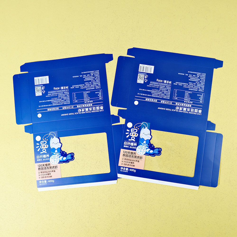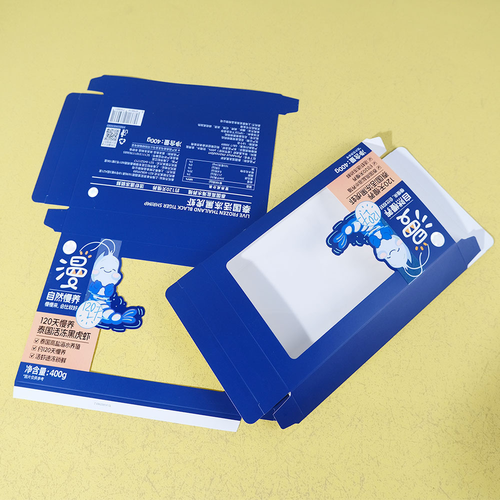 Box Printing Custom Foldable Frozen Food Shrimp White Cardboard Paper Tuck Packaging Box with Plastic Window