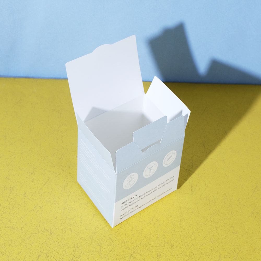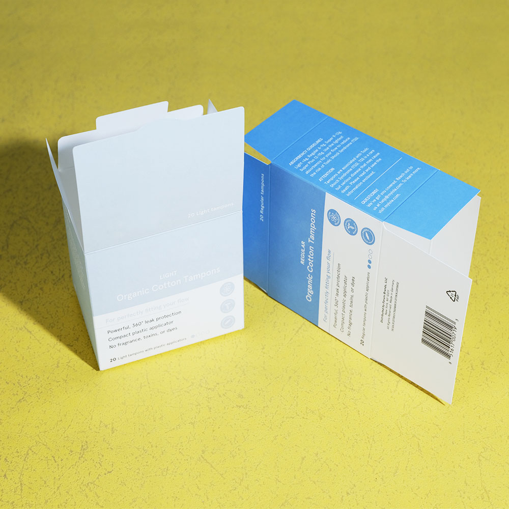 Box Printing Custom Fold CMYK Tear Strip Feminine Napkin Sanitary Napkins Tampon Paper White Cardboard Box Packaging
